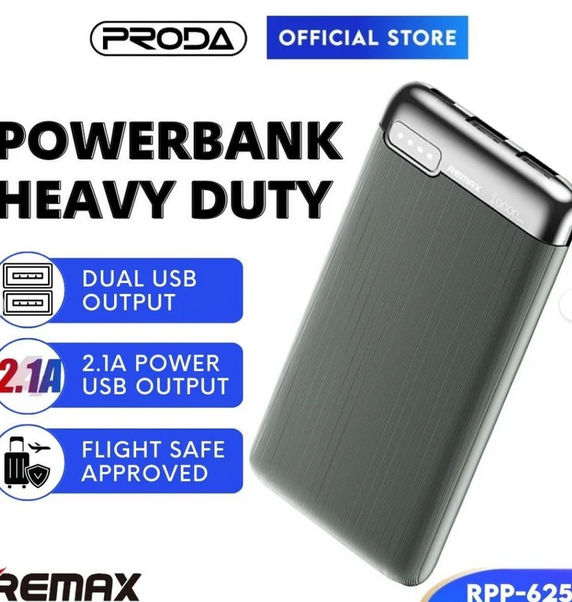 پاوربانک ریمکس مدل RPP-625ظرفیت 10000 میلی آمپر ساعت (خاکستری)