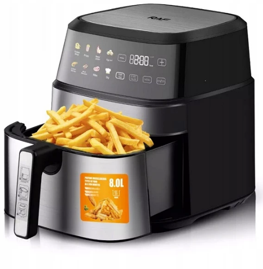ظرفیت بزرگ ۸ لیتر و قدرت بالا ۱۸۰۰ وات : سرخ کن با ظرفیت بالا، مناسب برای انواع غذاهای لذیذ مانند: مرغ کباب، ماهی کباب، گریل، کیک، بال مرغ سوخاری، نان و کلوچه پخته شده است . سیستم گردش هوای گرم غذای آماده شده را به طور یکنواخت می پزد .دستگاه ما به راحتی تمیز می شود، می توانیم سبد بزرگ را در چند لحظه زیر آب جاری بشوییم. علاوه بر این، دستگاه ما دارای یک فیلتر به راحتی قابل جابجایی است که چربی از محصولات سرخ شده در زیر آن جریان می یابد. پس از اتمام کار کافیست آن را بیرون بکشید و همچنین زیر آب جاری بشویید.امکانات آماده سازی سریع غذا بی پایان است. فرقی نمی کند سبزیجات سرخ کنید، سیب زمینی سرخ کرده یا گوشت سرخ کنید، این دستگاه همه کاره همه چیز را به روشی سالم تر ممکن می کند .شکل کانتور سرخ کن و گردش هوای هوا باعث می شود ظروف به طور یکنواخت سرخ شوند و در نتیجه از بیرون ترد و در داخل ظریف شوند .