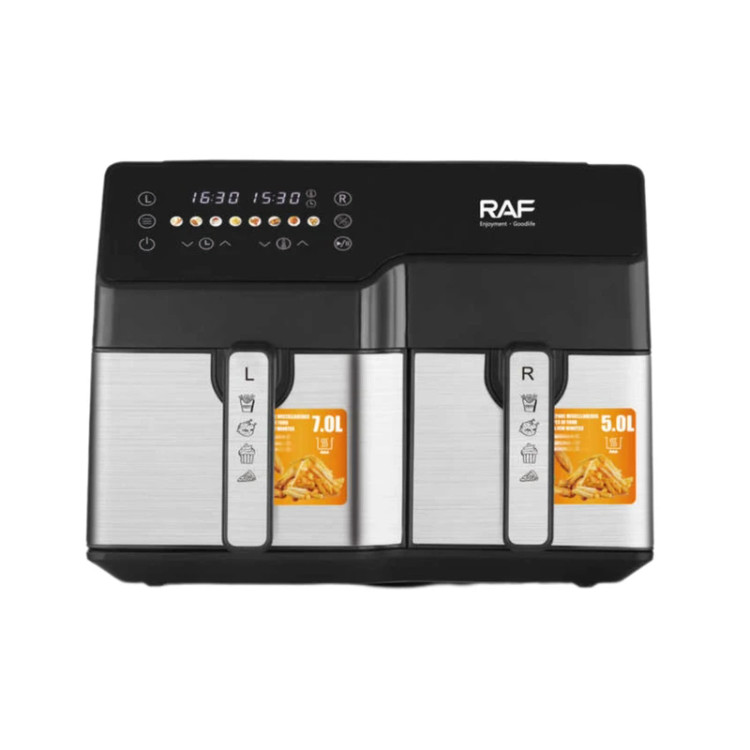 سرخ کن دوقلو راف مدل R.5342 از قدرت عملکرد بسیار مطلوبی بهره میبرد و ارزش خرید خیلی بالایی در بین سرخ کن های دو قلو دارد. این سرخ کن دو قلو با توان 2500 وات عمل میکند. این دستگاه دارای دو سبد7 و 5 لیتری است و از این منظر که سبد 7 لیتری آن گنجایش بزرگی دارد و می تواند یک مرغ را در خود جای بدهد، در لیست بهترین سرخ کن های دو قلو بازار قرار میگیرد. لایه نچسب و ضد خش، محافظ کاسههای این دو سرخ کن است که شستشوی آنها را نیز آسان میکند. با استفاده از این دستگاه قادر به پخت همزمان دو نوع غذای مختلف خواهید بود که سرعت آشپزیتان را افزایش خواهد داد. در منوی این دستگاه نیز هشت برنامه پخت هوشمند دیده میشود که میتوانید برای هر محفظه از یک برنامه پخت مجزا بهره بگیرید. همچنین شما میتوانید به دلخواه زمان و دمای مد نظر خود را نیز تنظیم کنید تا غذای خود را مطابق با آنچه سلیقه شماست طبخ کنید. در مجموع اگر به دنبال یک سرخ کن دو قلو می باشید که هم از کیفیت مناسب، طراحی زیبا و مدرن و همچنین قیمت مناسبی برخوردار باشد، سرخ کن راف مدل 5342 می تواند یکی از بهترین گزینه های شما باشد.
