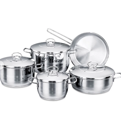 یک قابلمه سایز ۲۴ به همراه در استیل یک قابلمه سایز ۲۰ به همراه در استیل یک قابلمه سایز ۱۶ به همراه در استیل یک تابه گرد دو دسته سایز ۲۴ به همراه در استیل یک تابه گرد تک دسته سایز ۲۴ بدون در