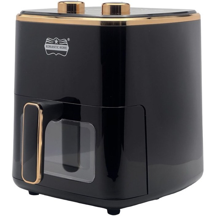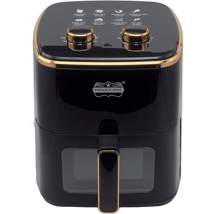 سرخکن بدون روغن رومانتیک هوم،-مشکی -ظرفیت 5 لیتری، دارای قابلیت تنظیم دما، 6 برنامه پخت متنوع، سیستم قطع خودکار، تنظیم تایمر تا 60 دقیقه، قابلیت شستوشو قطعات جانبی، مدل yj803b