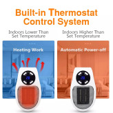 هیتر safe electrics، جدیدترین و پیشرفتهترین محصول تولیدی این کمپانی است که در عین کوچکی، امکانات منحصربهفرد و کاملی دارد. ابعاد این محصول 11.5x7 سانتیمتر بوده و دارای ویژگیها و قابلیتهای زیر است: دارای ریموت کنترل است. قابلیت تنظیم دما از 20_32 درجه سانتیگراد دارد. با استفاده از بهترین متریال و المنت حرارتی سرامیکی ساخته شده است. کم مصرف و مناسب در صرفهجویی انرژی است. گرمایش سریع در 3 ثانیه صورت میپذیرد. دارای صفحه نمایش LED است. دارای تایمر قابل تنظیم 1-12 ساعته است. حفاظت از گرمای بیش از حد دارد؛ در صورت گرمای بیش از حد، به صورت اتوماتیک خاموش میشود.فکنترلر دمای هوشمند محیط دارد؛ درصورت رسیدن محیط به دمای مورد نظر به صورت اتوماتیک خاموش میشود. دارای دوشاخه چرخشی 180 درجه است. کوچک و قابل حمل و مناسب برای گرم کردن محیط تا 50 فوت مربع است. آرام برای استفاده هنگام خواب است.