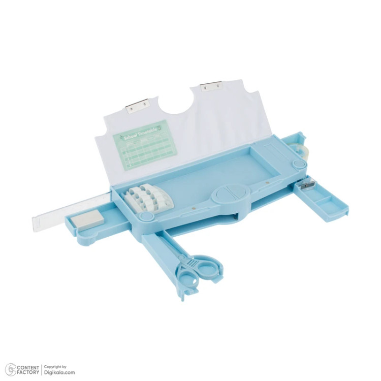 دارای ۱ عدد قیچی - چسب نواری - تراش و پاک کن