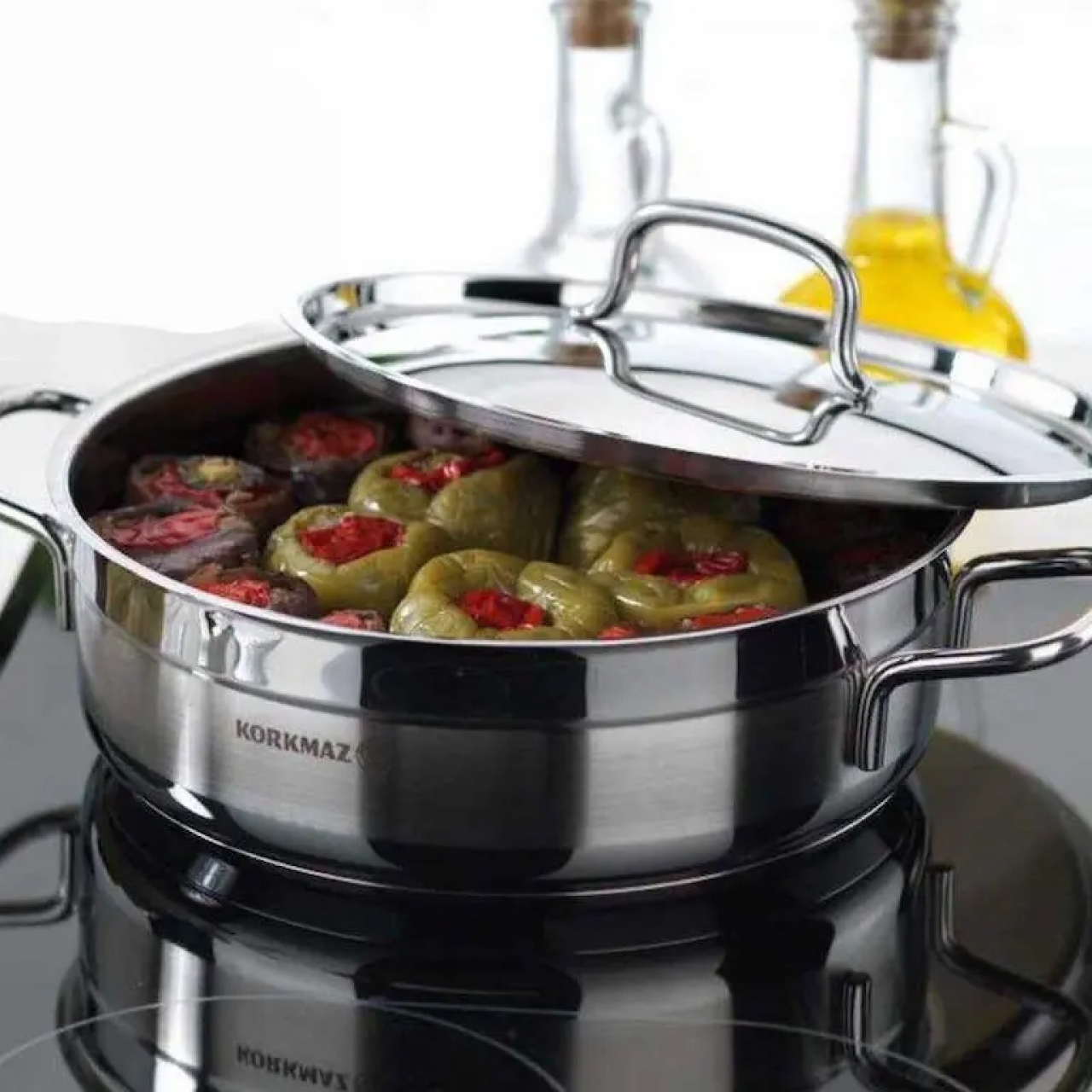 سرویس قابلمه استیل کرکماز مدل A2000 از آلیاژی تولید شده است که از فلزات نیکل، کروم و آهن تهیه می شود. مشخصه ظاهری این سرویس براقیت و درخشندگی بسیار زیاد است. این نوع قابلمه در برابر ضربه دوام زیادی دارد و در برابر فشار نیز می تواند دوام زیادی از خود نشان دهد. جنس بدنه و درب ها از استیل ضد زنگ 18/10 است و دارای ۳ عدد قابلمه، ۲ عدد تابه و ۴ عدد درب، کفه ۳ لایه و سایز قابلمه ها ۲۴-۲۰-۱۶، تابه دو دسته ۲۴، تابه تک دسته ۲۴ سانتی متر است. در ساخت سرویس قابلمه استیل کرکماز از ورق استیل ضد زنگ INOX استفاده شده است که مرغوبترین نوع استیل است که ترکیبی از فولاد و کروم و نیکل بوده و در طول زمان ظاهر براق و شکل خود را حفظ میکند. این نوع استیل، استیل کروم-نیکل 18/10 نامیده میشود و به صورت مادامالعمر ضد زنگ و خوردگی است و فرسایش نمییابد. به دلیل عدم وجود پوشش خاص درون ظروف کرکماز، این ظروف کاملا بهداشتی و سالم هستند و بهترین انتخاب برای پخت و پز به شمار میآیند. به علاوه، کفهی سه لایهی چدنی سرویسهای قابلمه کرکماز دارای کپسولهای حرارتی است که موجب پخش یکنواخت و موثرتر حرارت میشود و در انرژی و زمان پخت و پز صرفه جویی به عمل میآورد. دستهها و برآمدگی در قابلمهی کرکماز حرارت را جذب نمیکند و همیشه خنک است و بنابراین باعث سوختن دست نمیشود. ظروف کرکماز نچسب و نسوز هستند و بنابراین برای پخت غذاهای بدون آب و روغن و نیز مناسب هستند. قیمت سرویس قابلمه استیل کرکماز به نسبت مدلهای دیگر مناسبتر است و همین امر توجه بیشتر را به خود جذب کرده است. سرویس قابلمه استیل کرکماز از نمونههای موفق در بازار است که با تعداد پارچه لازم و ضروری و همچنین قیمت مناسب توانسته جایگاه مناسبی را در بازار برای خود ایجاد نماید. دسته استیل بهکار رفته در سرویس قابلمه کرکماز در مقابل گرما بسیار مقاوم است و حمل را برای مصرف کننده بسیار راحتتر از قبل کرده است. همچنین شکل و طراحی دسته سرویس قابلمه به گونهای است که امکان حمل را به سادهترین شیوه ممکن میسر ساخته است.