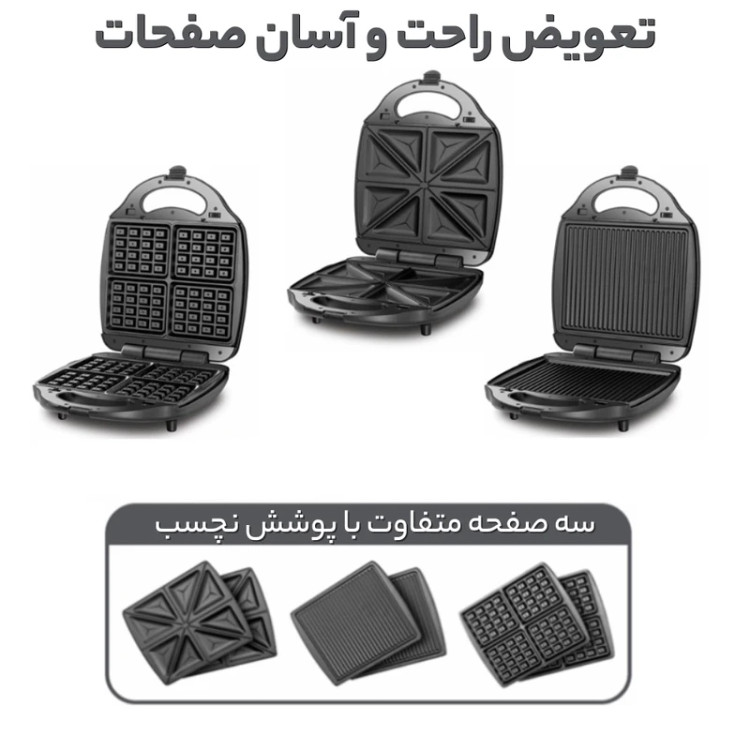 سه صفحه نچسب جداشونده ساندویچ ساز وافل ساز گریل