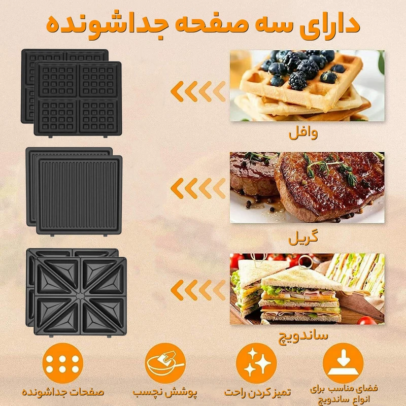 سه صفحه نچسب جداشونده ساندویچ ساز وافل ساز گریل