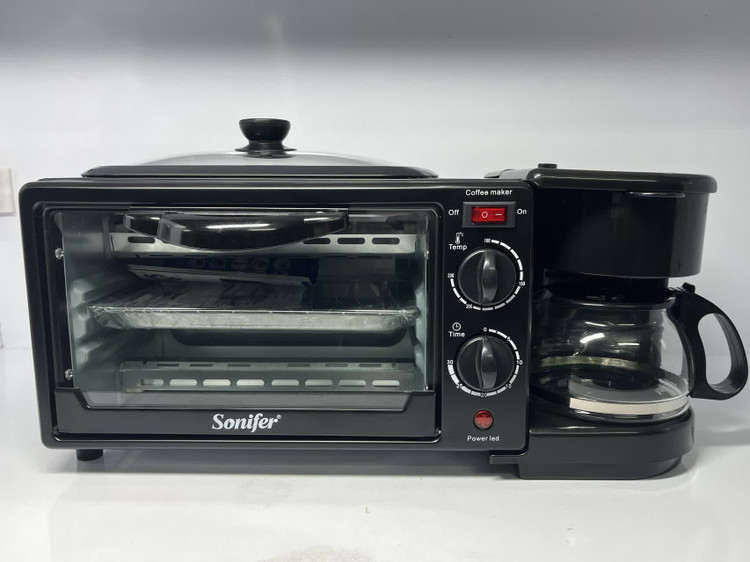 دستگاه صبحانه ساز سونیفر یک سه کاره کامل و جمع و جور برای تهیه صبحانه و عصرانه است. این دستگاه از آون تستر، قهوه ساز و ماهیتابه برقی تشکیل شده که هر کدام به تنهایی از ملزومات زندگی روزمره می باشد. آون توستر یکی از کارآمدترین لوازم آشپزخانه به شمار میآید، که شما می توانید به وسیله آن نان برشته وتست کنید و در عین حال یک نسخه کوچک از اجاق گاز نیز در اختیاردارید. از ویژگیهای آون توستر آن میتوان به قابلیت تنظیم زمان و حرارت اشاره کرد. قهوه ساز این دستگاه یک قهوه ساز چکه ای ( drip coffee) است که درب قسمت بالایی محفظه باز شده و یک عدد فیلتر یا همان صافی قابل جدا سازی و شستشو نیز در داخل محفظه وجود دارد. کافی است داخل مخزن آب را پر کرده و سپس با پیمانه داخل فیلتر، قهوه بریزید، به همین راحتی قهوه ای خوش طعم و معطر خواهید داشت. ماهیتابه برقی نیز آخرین عضو این مجموعه است که به راحتی و با استفاده از آن قادر هستید غذای مورد نیاز خود را تهیه کنید. خرید این محصول شما را از خرید جداگانه سه محصول ذکر شده بی نیاز می سازد و بسیار مقرون به صرفه است و با حجم کمی که دارد می تواند شما را از دردسر خرید و نگهداری بسیاری از ابزار آشپزخانه و شلوغی و اشغال جای زیاد راحت کند.