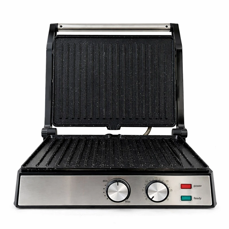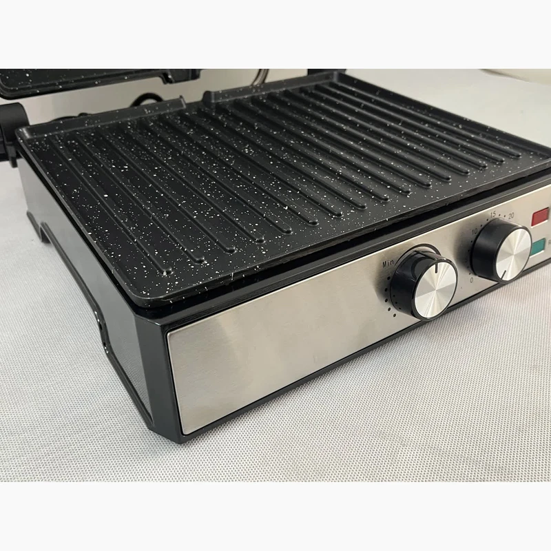 گریل برقی Dessini ds۲۱۴ یک دستگاه حرفهای و در عین حال ساده برای پخت انواع غذاهای گریلشده و سبزیجات میباشد. این محصول با طراحی زیبا و مدرن خود در ترکیب رنگ مشکی و نقرهای ارائه شده است که به راحتی با دکوراسیون آشپزخانههای امروزی هماهنگ میشود. دستگاه دارای قدرت ۲۰۰۰ وات است که امکان گرمایش سریع و یکنواخت را برای پخت کامل غذاها فراهم میکند. سطح آلومینیومی ضدچسب با طراحی شیاردار و پوشش آنتیاستیک، هم پخت غذا را آسان میکند و هم تمیزکاری دستگاه را بسیار ساده میسازد. سیستم فشاردهنده غذا در این مدل، امکان پخت یکدست و حفظ آبدار بودن مواد غذایی را به خوبی فراهم مینماید. ابعاد جمعوجور دستگاه (۳۸.۵ × ۳۹ × ۱۷.۵ سانتیمتر) باعث شده تا فضای کمی را در آشپزخانه اشغال کند و نگهداری آن بسیار آسان باشد. این محصول با طراحی برند ایتالیایی Dessini و ساخت در چین ارائه شده است. این گریل با ترکیب کارایی بالا و ظاهر شیک، انتخابی ایدهآل برای تهیه غذاهای گریلشده در محیط خانه محسوب میشود.