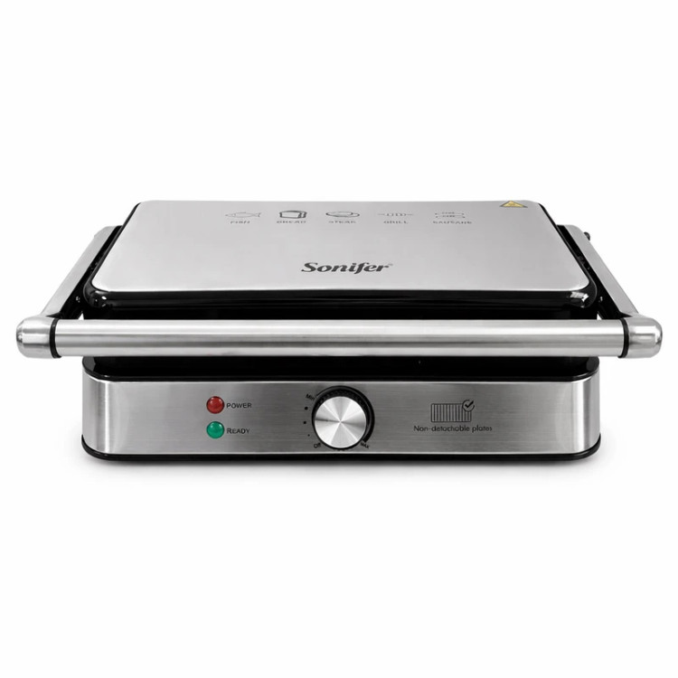 گریل برقی سونیفر مدل ۶۱۷۲یک دستگاه حرفهای و در عین حال ساده برای پخت انواع غذاهای گریلشده و سبزیجات میباشد. این محصول با طراحی زیبا و مدرن خود در ترکیب رنگ مشکی و نقرهای ارائه شده است که به راحتی با دکوراسیون آشپزخانههای امروزی هماهنگ میشود. دستگاه دارای قدرت ۱۸۰۰ وات است که امکان گرمایش سریع و یکنواخت را برای پخت کامل غذاها فراهم میکند. سطح آلومینیومی ضدچسب با طراحی شیاردار و پوشش آنتیاستیک، هم پخت غذا را آسان میکند و هم تمیزکاری دستگاه را بسیار ساده میسازد. سیستم فشاردهنده غذا در این مدل، امکان پخت یکدست و حفظ آبدار بودن مواد غذایی را به خوبی فراهم مینماید. ابعاد جمعوجور دستگاه (۳۸.۵ × ۳۹ × ۱۷.۵ سانتیمتر) باعث شده تا فضای کمی را در آشپزخانه اشغال کند و نگهداری آن بسیار آسان باشد. این محصول با طراحی برند سونیفر ساخت در چین ارائه شده است. این گریل با ترکیب کارایی بالا و ظاهر شیک، انتخابی ایدهآل برای تهیه غذاهای گریلشده در محیط خانه محسوب میشود.