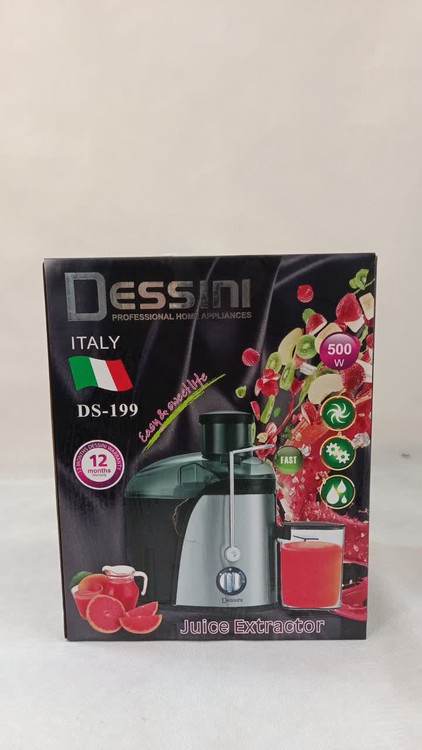 آبمیوهگیری دسینی مدل DS-199 با قدرت 500 وات، ترکیبی از عملکرد بینظیر و طراحی شیک. این آبمیوهگیری با بدنهای از استیل مقاوم و پلاستیک فشرده،